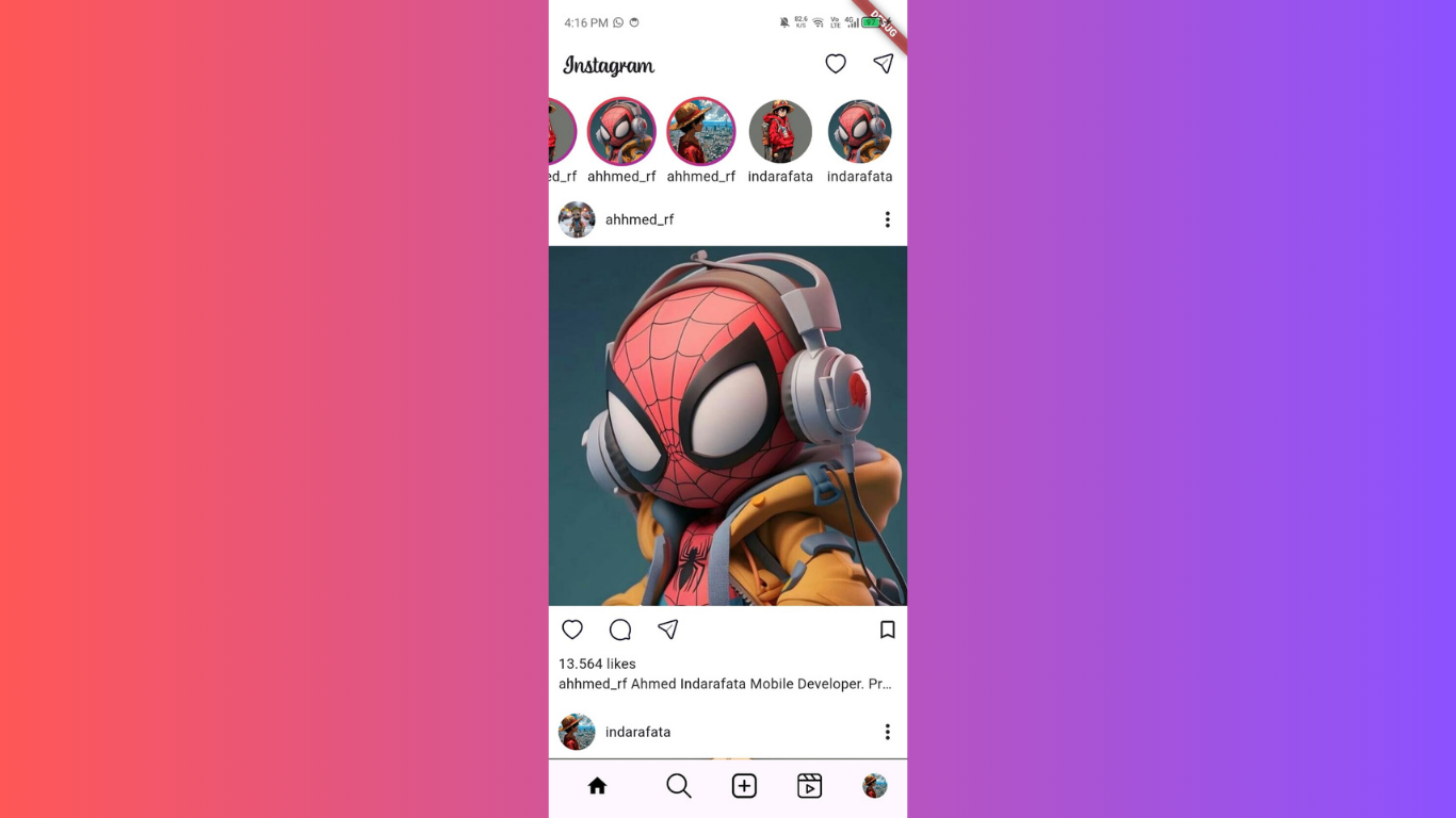 Recreating the Instagram Home Page with Flutter and GetX. In this project, I recreated the home page of Instagram using Flutter and GetX for state management. My goal was to accurately replicate the existing application to enhance my skills and demonstrate my proficiency in Flutter development.